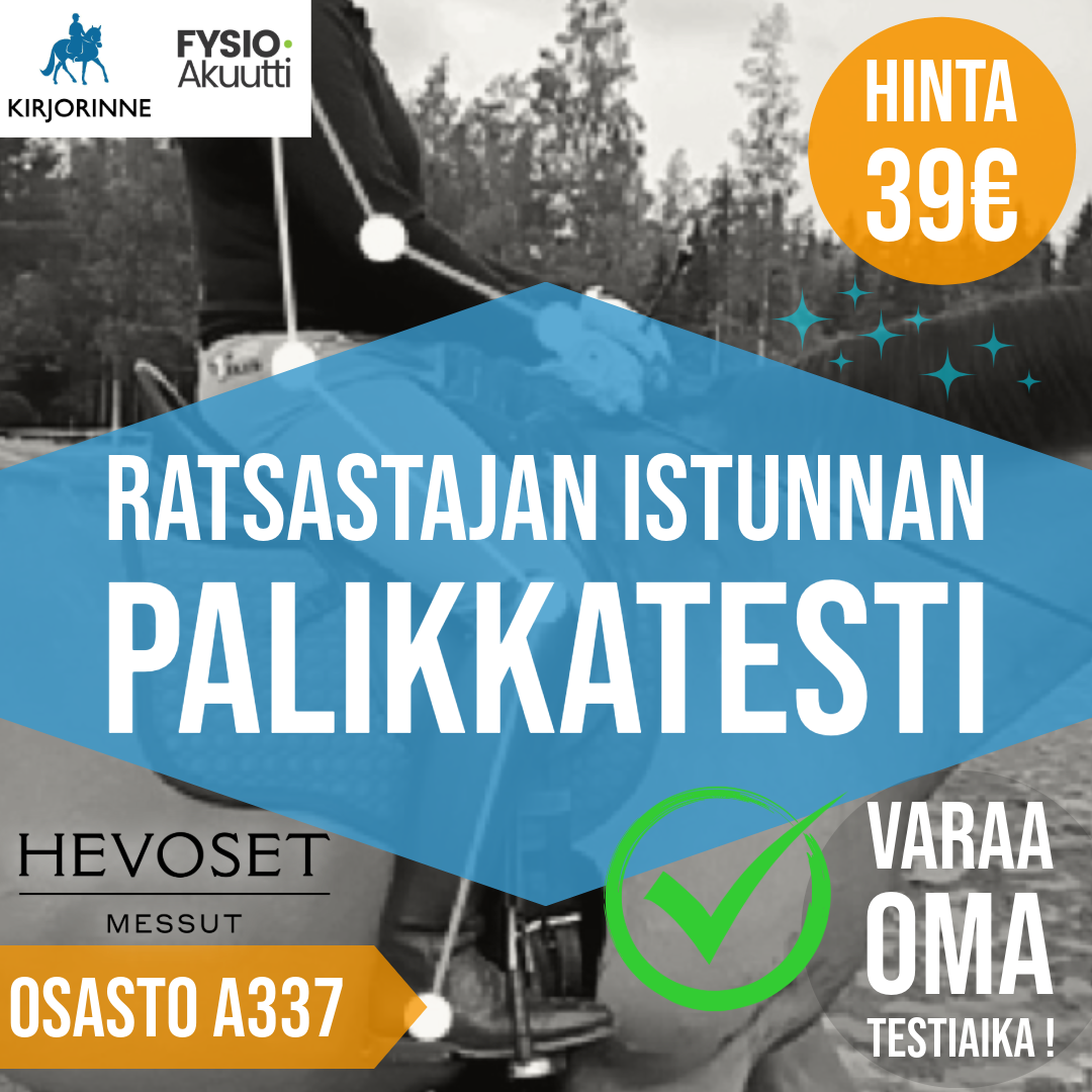 Ratsastajan istunnan PALIKKATESTI osastolla A337, Kirjorinne - KJR Equitation Oy.